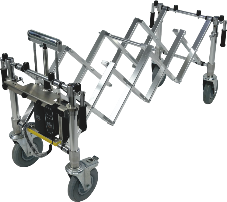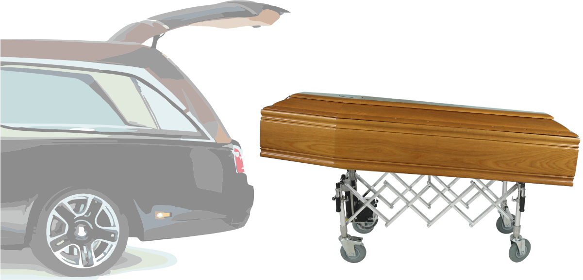 The Jolly Energy trolley was designed to be used with all hearses, easily adapting to the different heights of the various models.