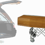 Using an electric actuator, the coffin is raised to the height of the hearse floor and can be easily pushed into the vehicle compartment thanks to the front roller.