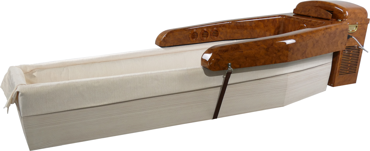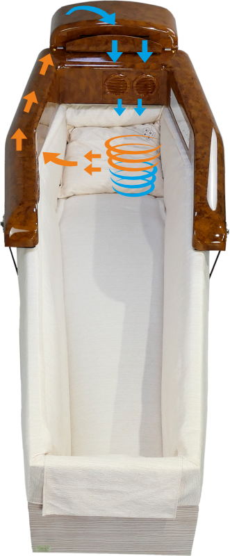 Adeguatamente impostato, è in grado di abbassare la temperatura nel cofano di 15 gradi rispetto a quella presente nell’ambiente. Questo permette l’esposizione della salma in tempi ristretti e nel rispetto della normativa vigente.