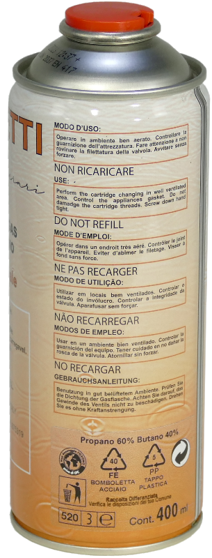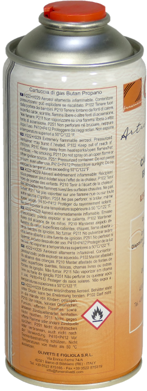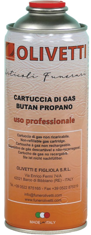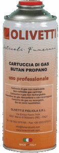 Bomboletta con gas butan-propano, viene impiegata sui saldatori con attacco filettato per la chiusura del coperchio della cassa in zinco dei cofani.